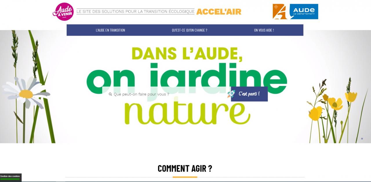 Ce nouveau site accelair.aude.fr, conçu pour vous, ne se contente pas de recenser les actions engagées par le conseil départemental de l'Aude. Il vous fournit des conseils, astuces, liens utiles et bien d'autres informations pour faire de vous, de nous, !es acteurs de l'Aude à venir.