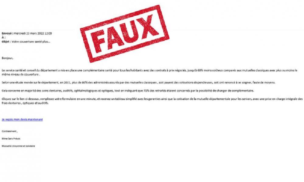 Des courriels proposant de souscrire à une complémentaire santé aux tarifs très alléchants sont envoyés à des résidents audois. Ce sont des faux visant à tromper leurs destinataires.