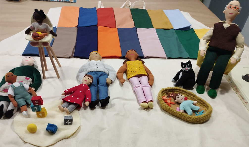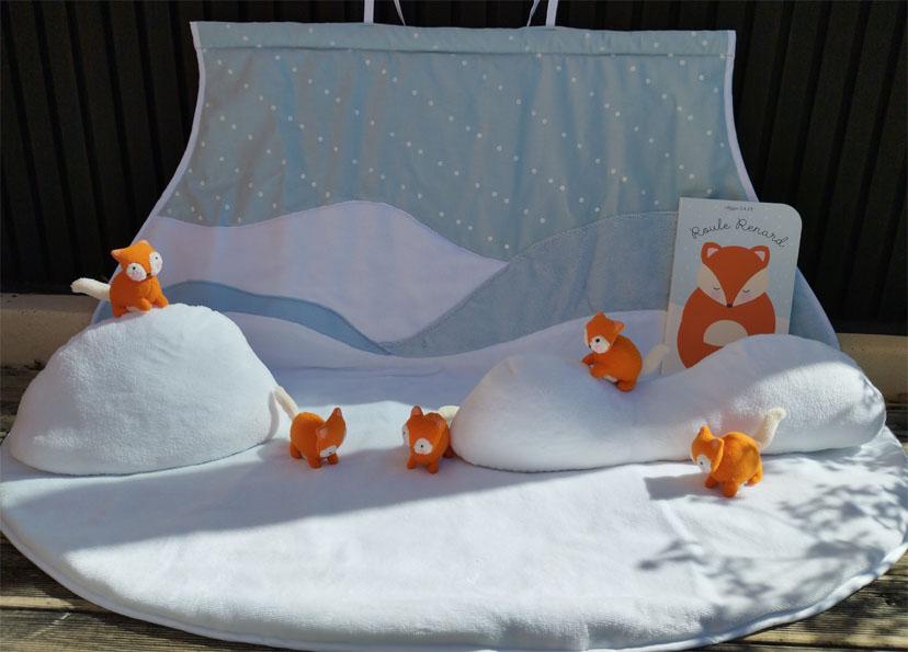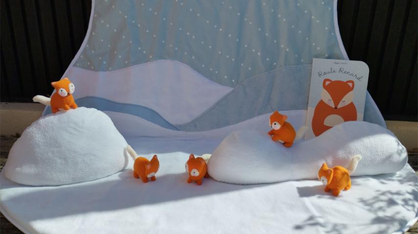 Des contes en tissu sont proposés, supports ludiques à la lecture d'ouvrages destinés aux bébés lecteurs.
