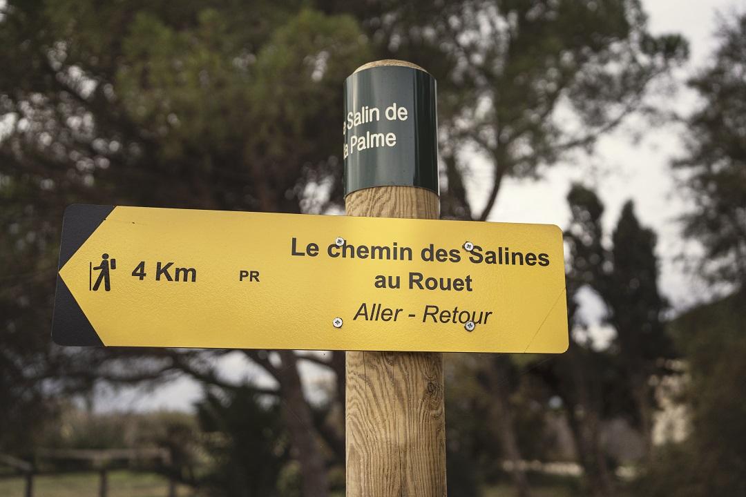 Le chemin des Salins, depuis le village de La Palme jusqu'à la plage du Rouet... 2 km de promenade, entre sel et mer, à la découverte de la richesse ornithologique... Un sentier désormais sécurisé, dans un cadre verdoyant, et qui offre aux promeneurs des vues magnifiques.