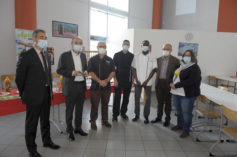 Conseiller départemental en charge d'Agrilocal11, Jean-Luc Durand, accompagné d'André Viola, conseiller départemental du canton de la Piège au Razès, a procédé mercredi 20 octobre à la remise officielle du livret aux chefs cuisiniers du collège Saint-Exupéry de Bram, Cyril Cazanave et Daniel Ancely. Une cérémonie similaire s'est tenue le 4 novembre dans les cuisines du service du protocole du Département, à Villegly, en présence de Jean-Luc Durand et d'Alain Giniès, vice-président du conseil départemental en charge de l'économie de proximité et de l'agriculture. Une reconnaissance bien méritée !
