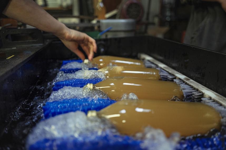 En bouteilles ou en bocaux, jusqu'à 4 tonnes de fruits, 3000 litres de jus et 350 kg de conserves peuvent sortir, chaque jour, des deux ateliers de la coopérative de transformation de fruits et légumes ! Des produits transformés 100% locaux, 100% audois, commercialisés ensuite dans l'un des douze points de vente répartis sur notre territoire. Pour le plus grand bonheur de nos papilles !