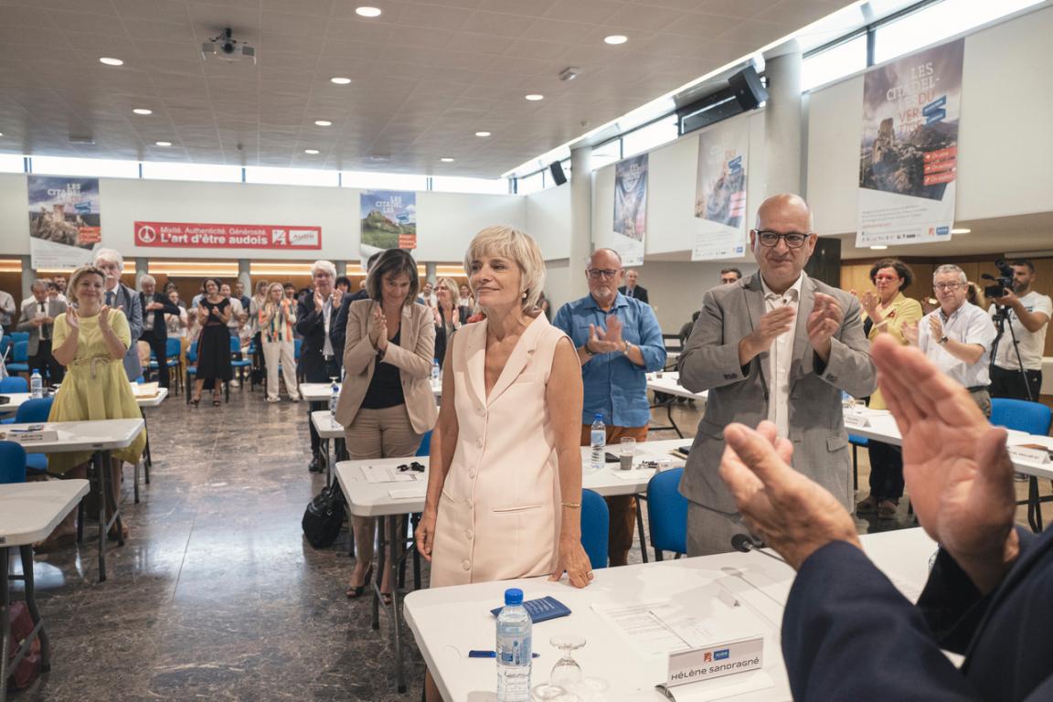 "Votre vote est lourd et fort de sens.Votre confiance m'honore, c'est un formidable carburant, et je m'engage à être à la hauteur de mes fonctions", a-t-elle poursuivi, sous le regard notamment de la préfête de l'Aude Sophie Elizéon, de la présidente de la Région Occitanie Carole Delga, de la députée de la première circonscription de l'Aude Danièle Hérin et de Christine Téqui, présidente du Département de l'Ariège, venues, tout comme les présidents des chambres consulaires, assister à l'élection.