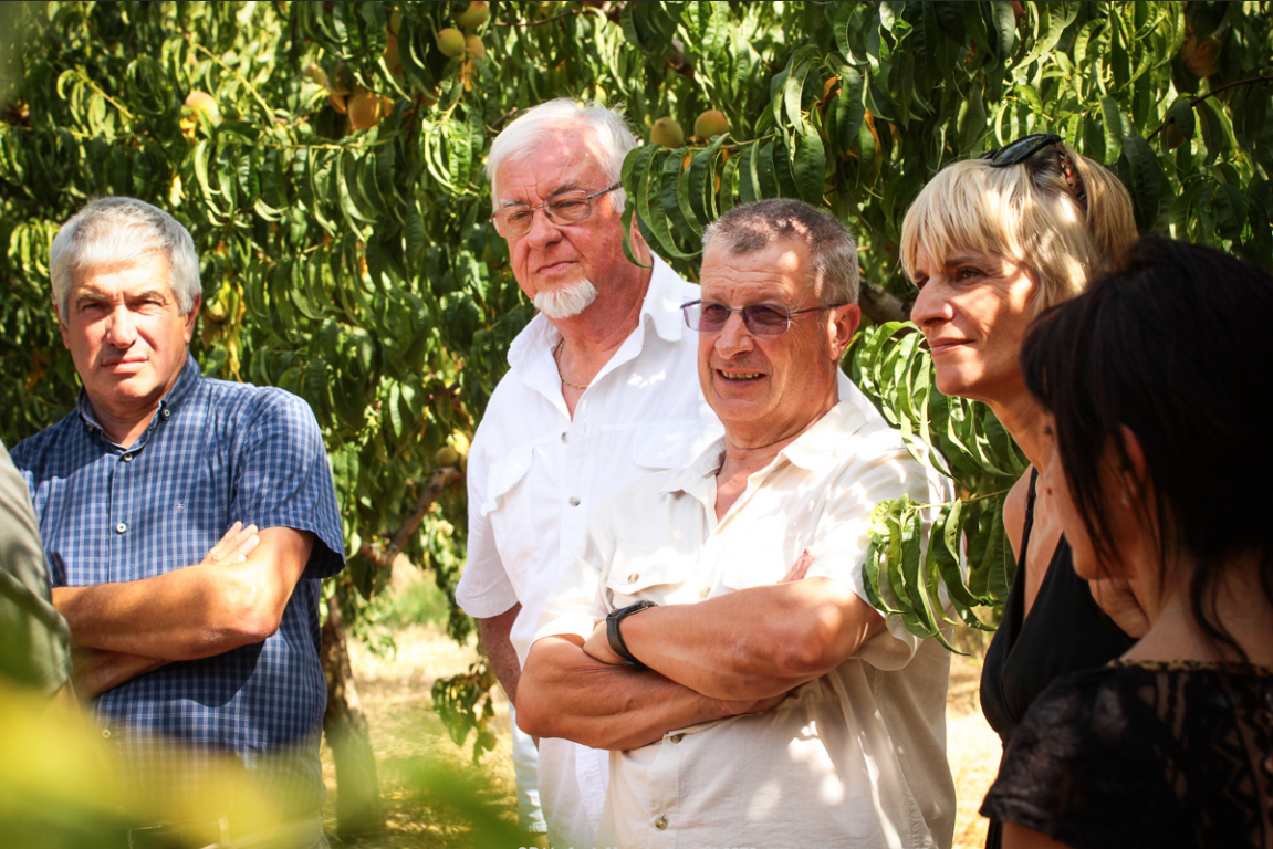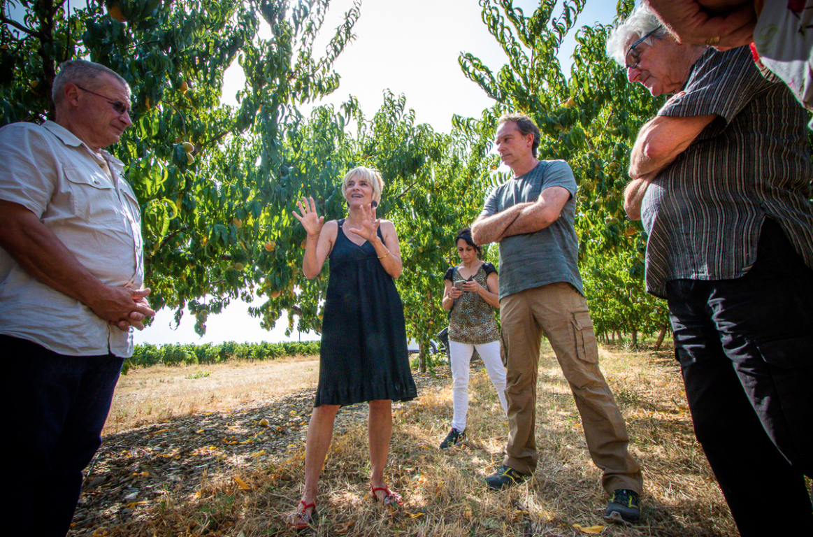 La viticulture et l'arboriculture : deux piliers de l'agriculture audoise qui doivent aujourd'hui faire face à la crise provoquée par la pandémie de covid-19. Jeudi, accompagnée notamment du président de la chambre d'agriculture de l'Aude Philippe Vergnes et des conseillers départementaux Christian Lapalu et Dominique Godefroid Hélène Vergnes a rencontré les acteurs d'un projet liant tourisme et agriculture au hameau du Somail, auquel participe Laurent Ratia, arboriculteur.