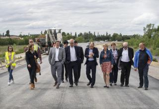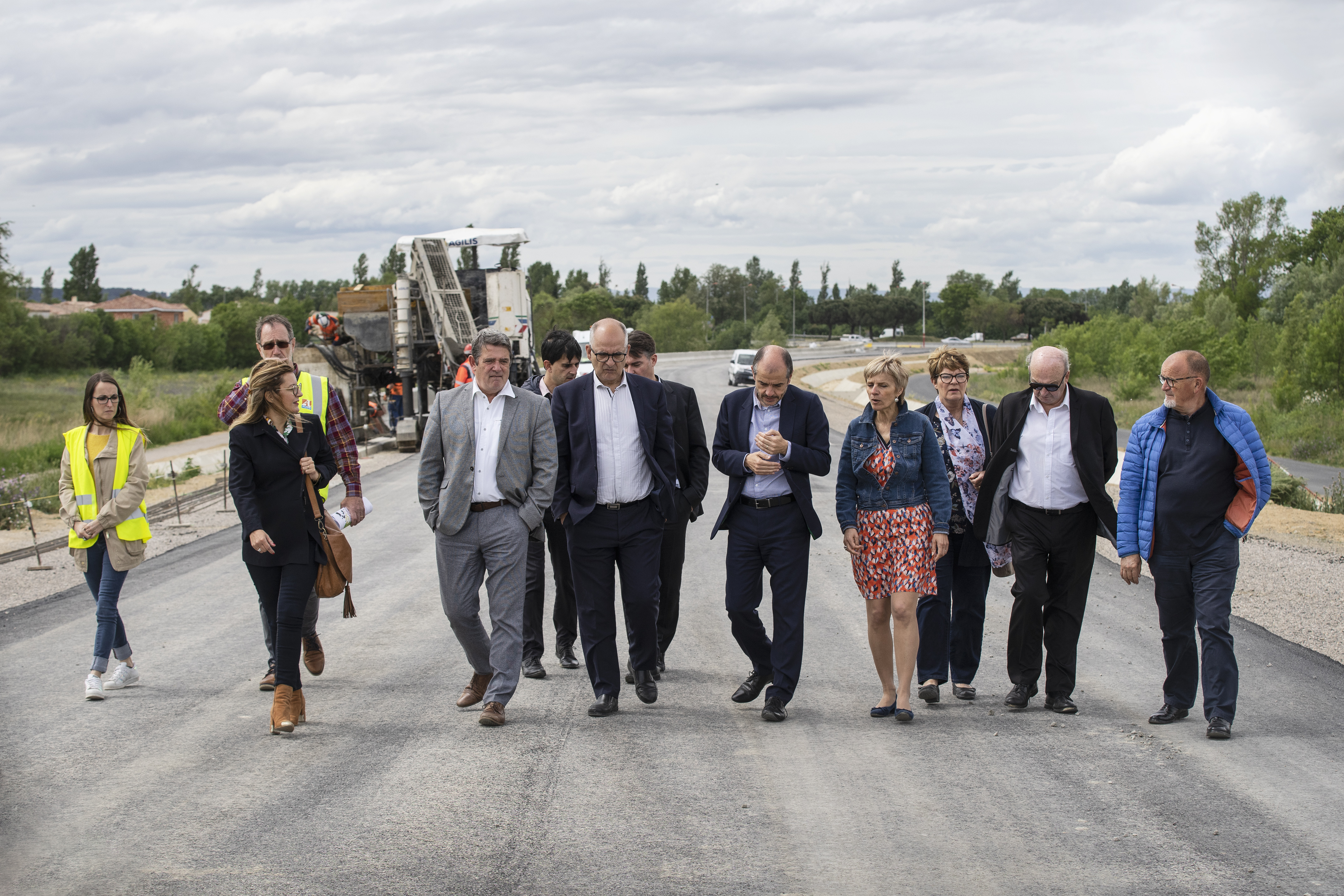 Ultime visite de chantier pour André Viola, président du conseil départemental de l'Aude, avec les conseillers départementaux Séverine Mateille, Didier Aldebert, Patrick François, Nicolas Sainte-Cluque, Hélène Sandragné, Dominique Godefroid, Jean-Luc Durand et Pierre Bardiès, vice-président du conseil départemental, en charge des routes.