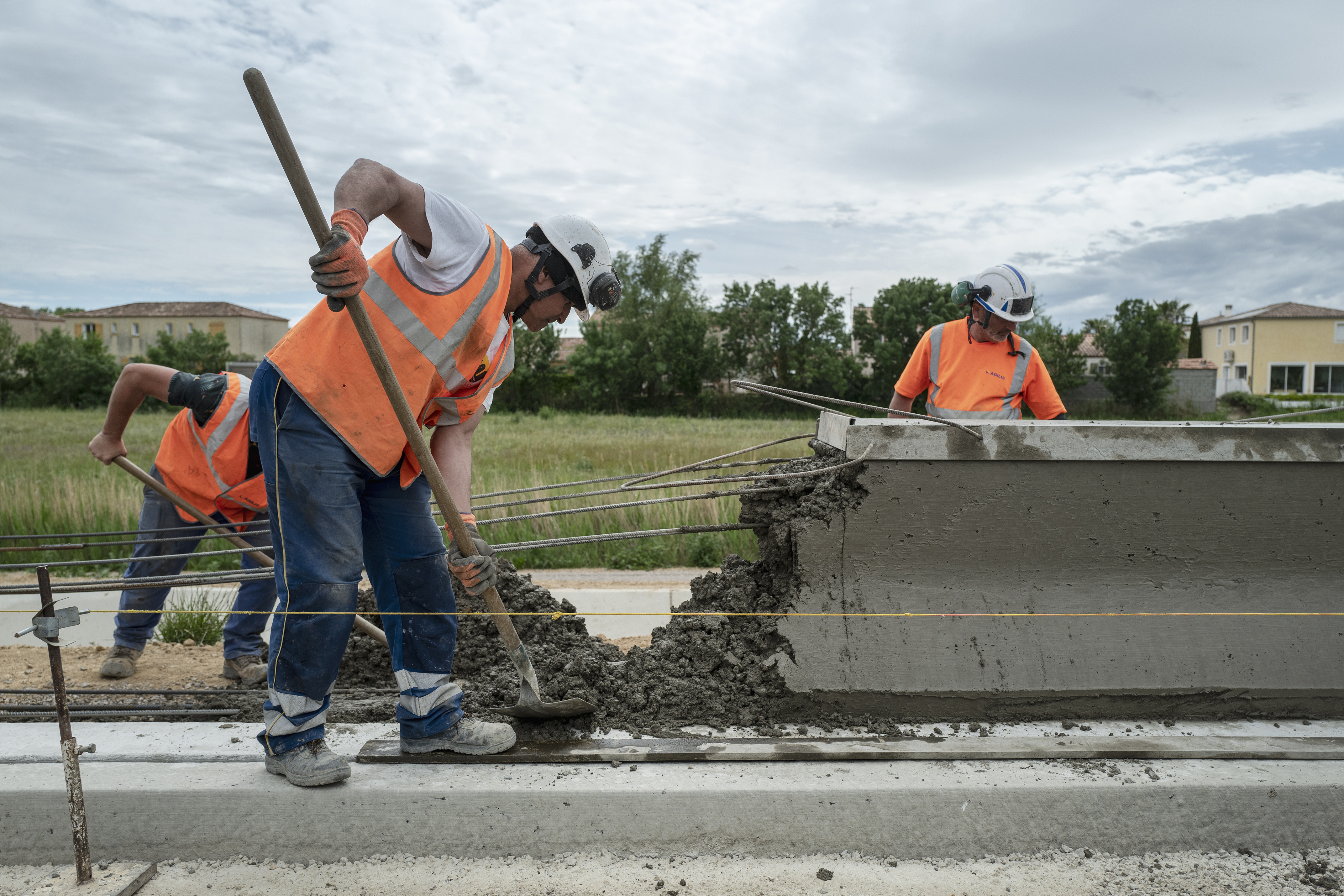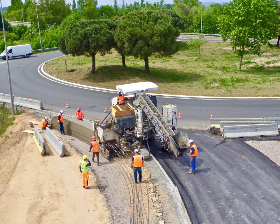 Ces derniers mois, les terrassements ont été achevés, ainsi que les couches de forme. Les enrobés ont été réalisés avant l’été, suivis de la pose des équipements béton, glissières et panneaux anti-bruits.