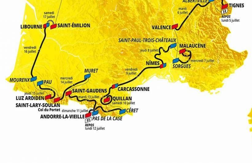Carcassonne-Quillan, 14e étape, le 10 juillet. Le peloton passera par Montréal, Escueillens, Chalabre, pour faire une incursion en terre ariégeoise avant de revenir dans l'Aude par le col de la Croix des morts, Espezel, Axat et finir par le col de Saint-Louis.