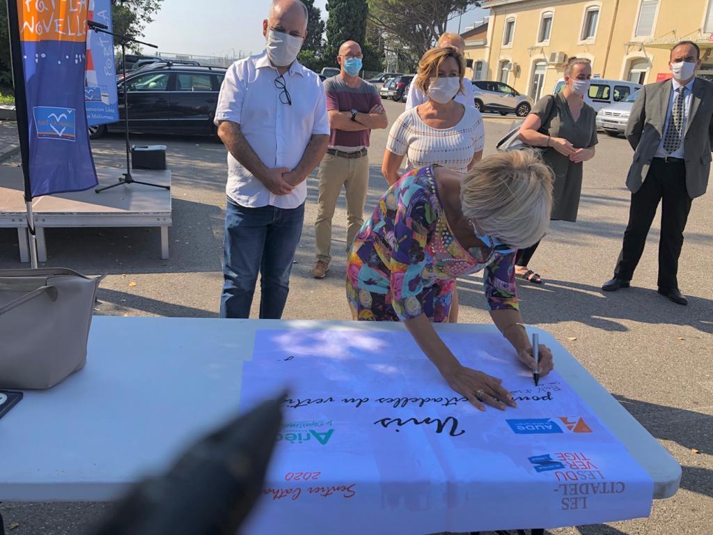 Puis, ce mercredi, en fin de matinée, c'est encouragés par la présidente du Département Hélène Sandragné, du vice-président délégué aux sports Patrick François et du maire de Port-la-Nouvelle Frédéric Cantié qu'ils sont partis depuis la gare de la commune... Rendez-vous dimanche à Foix !