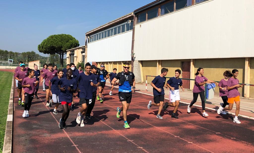 Avant de prendre le départ, les deux sportifs étaient passés, lundi, par le collège La Naïade, de Port-la-Nouvelle... où ils ont enchaîné quelques tours de piste avec des élèves de 6e à qui ils avaient présenté leur projet, histoire de se mettre en jambe.