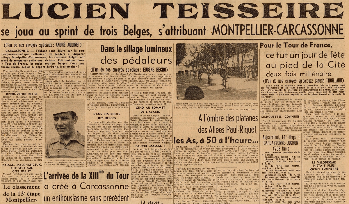 Quatre ans plus tard, le 19 juillet 1951, Carcassonne accueille la 15e étape du Tour de France (Luchon-Carcassonne). Il faudra ensuite attendre onze ans (8 juillet 1962) pour que le Tour de France s’arrête à nouveau dans la préfecture audoise. Au total, de 1947 à 2020, le Tour de France s’est donc arrêté dix fois dans la ville.