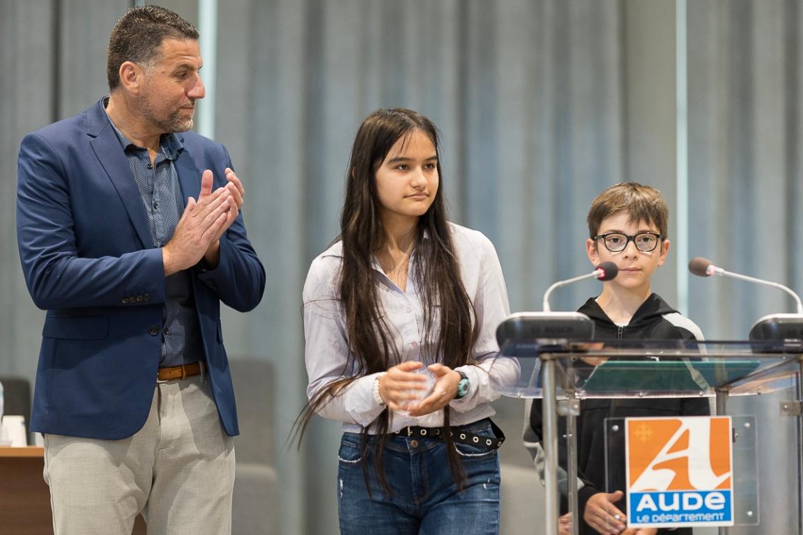 Lors de la présentation des travaux menés par les élèves le mercredi 1er juin à l'Hôtel du Département de l'Aude, Sébastien Gasparini, vice-président délégué à l'éducation et aux collèges, et Valérie Dumontet, vice-présidente en charge de la démocratie participative, de la jeunesse et de l'international étaient présents. Les deux élus ont salué les vertus pédagogiques de Planète collège et l'implication des élèves dans ces projets avec cet encouragement : "engagez-vous passionnément !"
