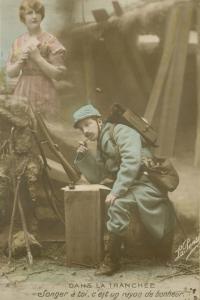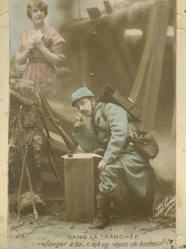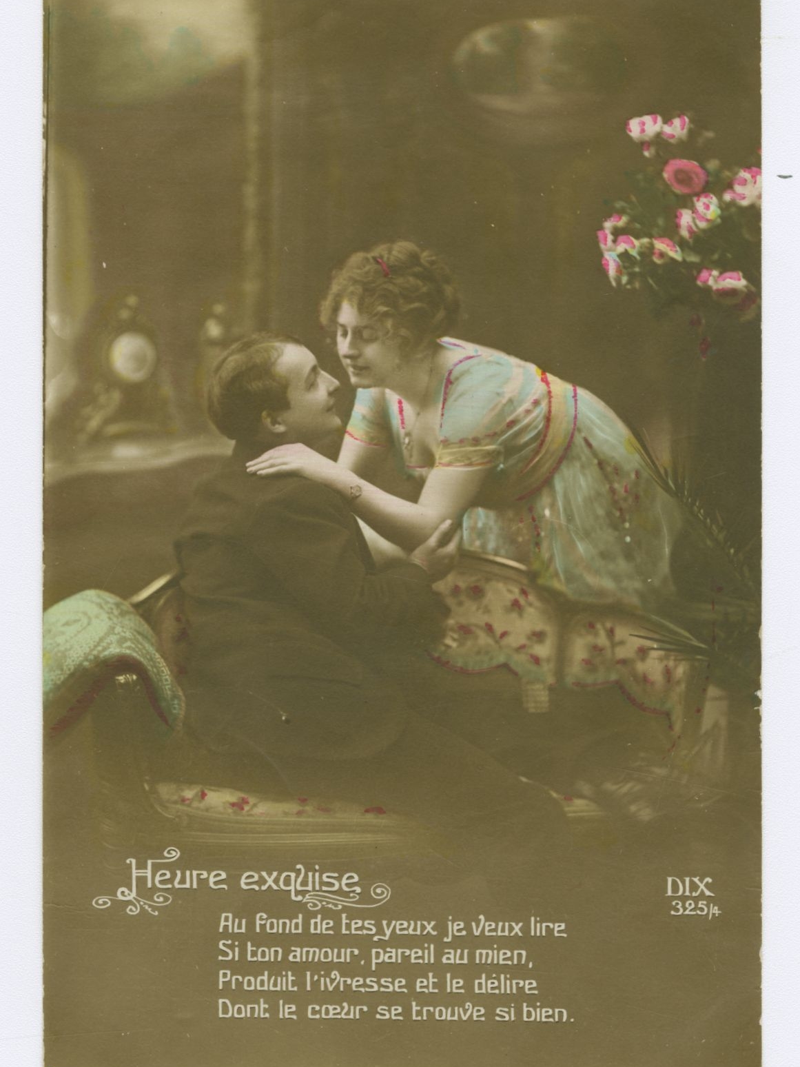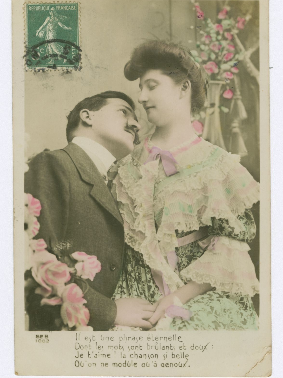 Parmi cette collection, on peut remarquer de nombreuses représentations de l'Amour, notamment au travers de pittoresques scènes de couple. On y voit également beaucoup de duos entre un poilu et sa fiancée. En effet, la Première Guerre mondiale est le premier grand conflit depuis les lois Ferry (1879-1886) qui ont instauré l'école publique gratuite, obligatoire et laïque, en France. Cela a conduit au développement des correspondances entre le front et l'arrière, et des correspondances amoureuses en particulier. En plus du côté amoureux, nombre de ces cartes ont un sous-texte patriotique : les conditions de vie au front et à l'arrière sont très dures et la correspondance permet aux uns et aux autres de tenir.