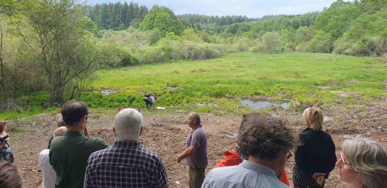 De là, des premiers travaux de restauration de zones humides ont été menés en 2022 avec la phase 1 de la restauration de la tourbière des Moussels, sur l’exploitation du GAEC Lassalle (bovin viande de race gasconne), commune des Martys. Ces travaux ont été présentés au grand public et aux enfants de quelques écoles primaires du département début mai 2023.