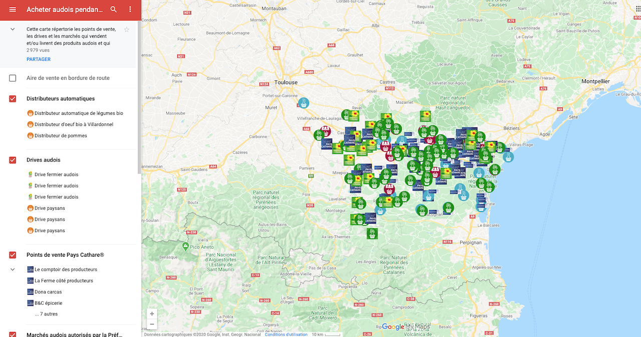 La période de confinement nous incite plus que jamais à consommer audois en faisant travailler les producteurs de notre territoire et en soutenant les points de vente valorisant les circuits de proximité. Voilà pourquoi le Département, en collaboration avec la marque Pays Cathare® et la Chambre d'agriculture de l'Aude, a conçu une carte interactive regroupant les producteurs et revendeurs de produits locaux.