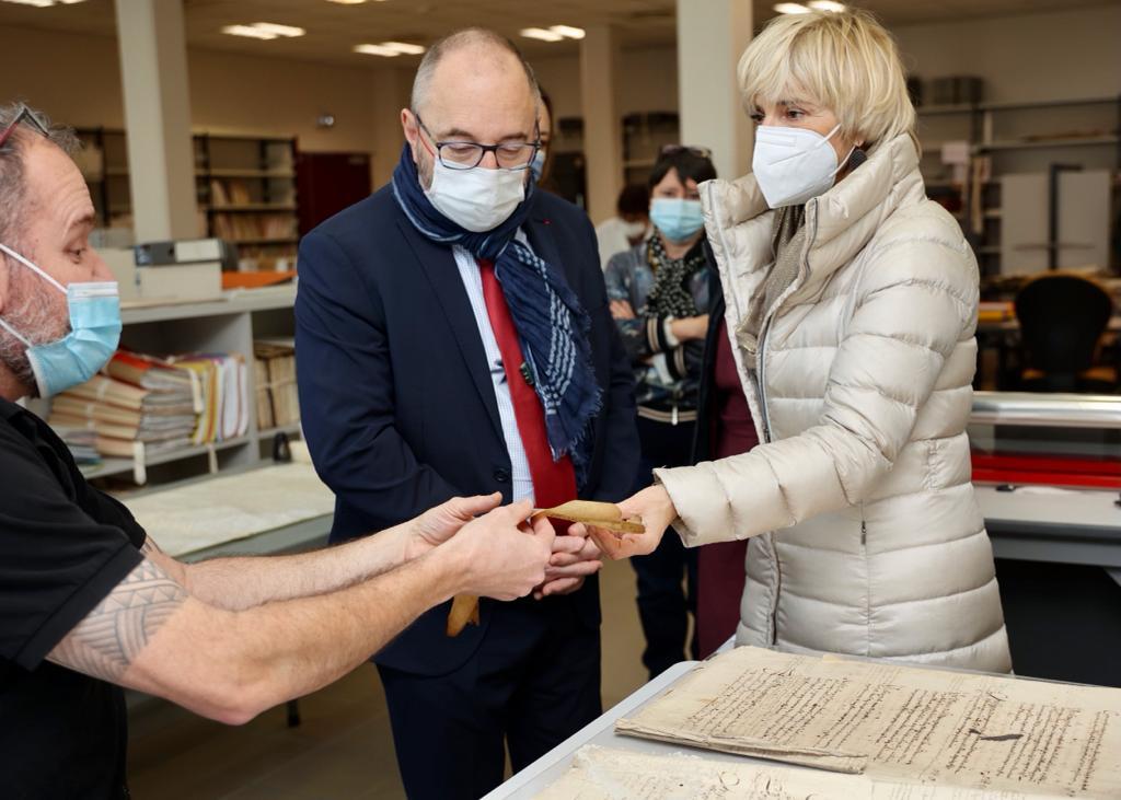 La nouvelle directrice des Archives départementales de l'Aude, Carole Renard, a pris ses fonctions le 1er février dernier. Vendredi, elle a reçu la visite de la présidente du Département Hélène Sandragné, accompagnée du préfet Thierry Bonnier et de la conseillère départementale déléguée à la culture Maria Conquet. L'occasion de rappeler le rôle essentiel des archives dans la préservation de la mémoire écrite et picturale de l'Aude.