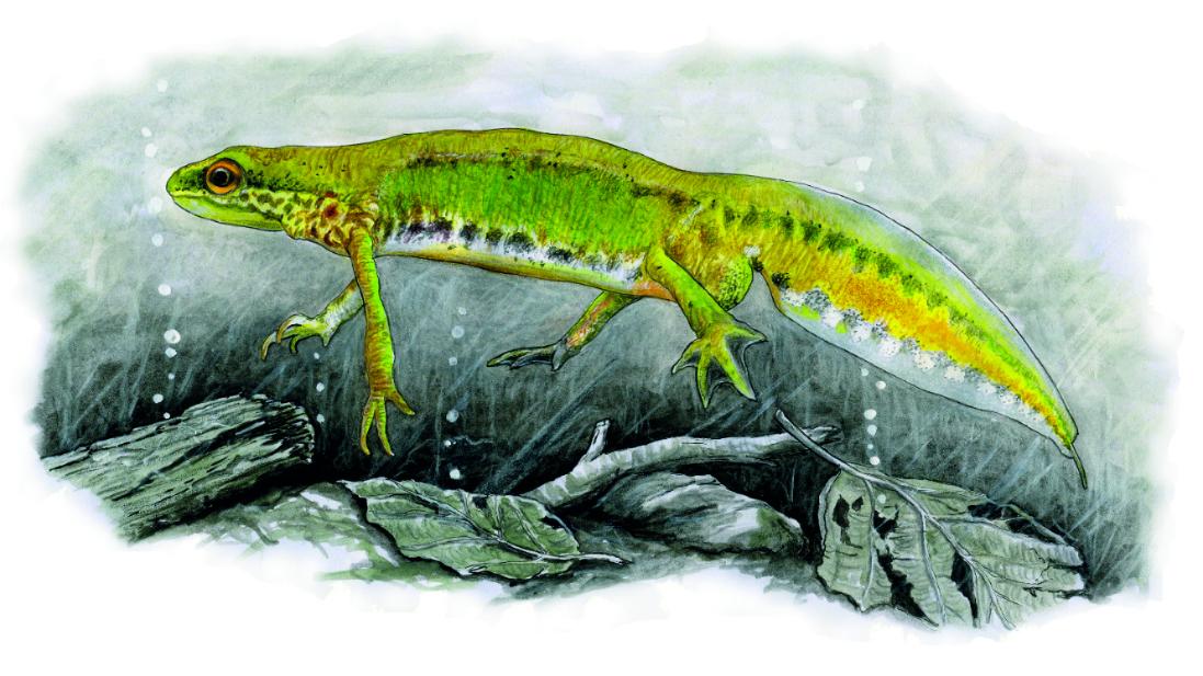 Le triton palmé est le plus petit de nos tritons : sa longueur n’excède pas 9 cm à l’âge adulte. On reconnait le mâle en période nuptiale à ses fortes palmures sombres aux pattes postérieures et à sa queue prolongée par un filament allongé. La femelle ne présente pas ces caractéristiques.