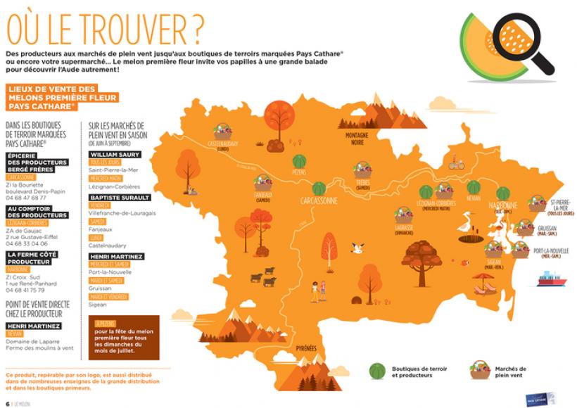14° minimum de teneur en sucre... C'est dire si le melon première fleur Pays Cathare est un régal des papilles ! Labellisé en 2005, sa production atteint aujourd'hui 6 000 tonnes, réparties entre 7 maraîchers. On le retrouve tout l'été sur les étals des marchés audois, pour le plus grand bonheur des vacanciers, et des locaux !