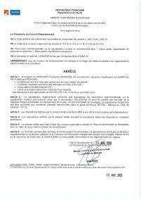 Mots-clés #Arrêtés routiers Arrêtés routiers Arrêté N° 2025T0388 - RD 507 - Saint Michel de Lanès du 05 au 28 mai 2025 inclus Publié le 23 avril 2025 Arrêté N° 2025T0388 - RD 507 - Saint Michel de Lanès (85.59 Ko) Télécharger Préc. Retour à la liste Suivant
