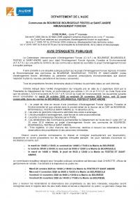 Avis enquête publique périmètre d'un aménagement foncier sur les communes de Bouriège, Bourigeole, Feste-et-Saint-André Publié le 9 septembre 2020 Avis enquête publique (223.99 Ko) Feuilleter Télécharger Préc. Retour à la liste Suivant