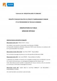 Mémoire réponse aux observations du commissaire enquêteur. Projet d'aménagement foncier et programme de travaux connexes sur la commune de Roquetaillade-et-Conilhac