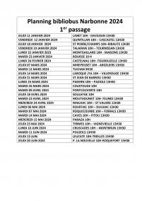 Tournées bibliobus BDA Narbonne 2024 Publié le 15 janvier 2020 Tournées bibliobus BDA Narbonne 1er passage 2024 (82.7 Ko) Feuilleter Télécharger Préc. Retour à la liste Suivant